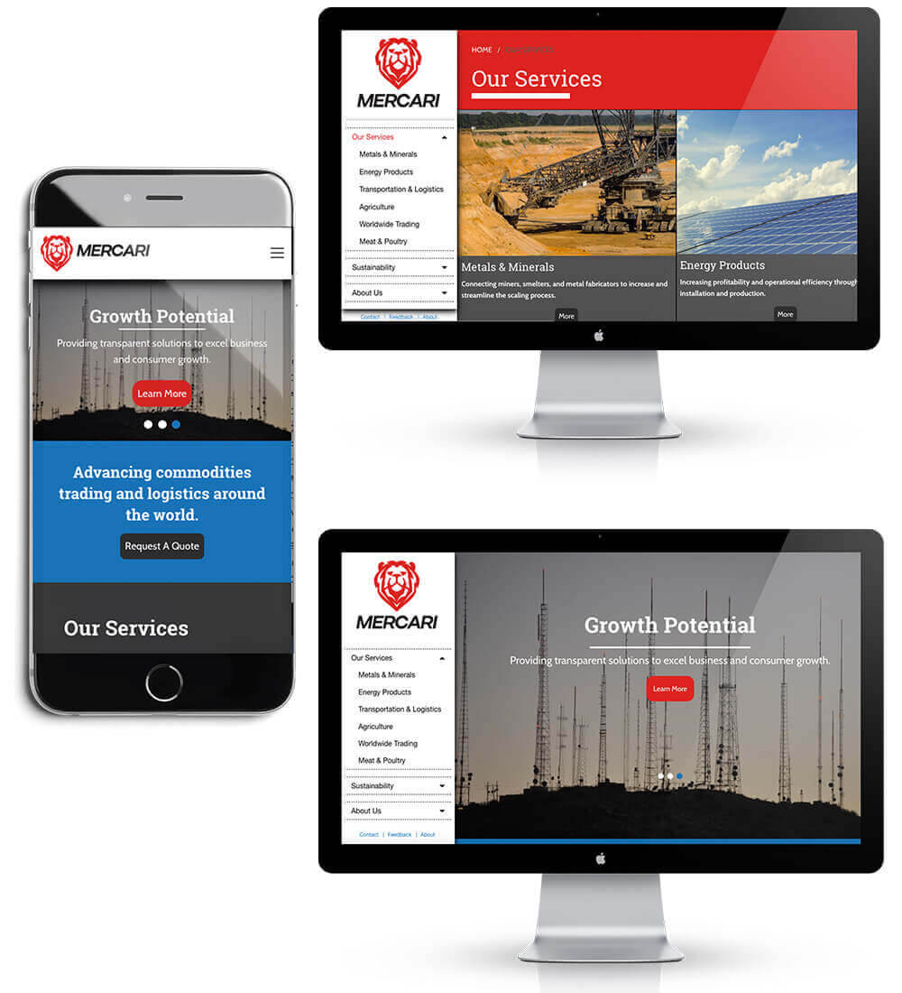 I designed the brandmark and the websites under a freelance contract. Both companies have the same owner so we worked closely together to develop the website and create the brandmark. I also served as the front end developer for the websites. Mercari Global is a commodity trading company that works with clients around the world to manage and transport different comodities. Mondial Technology Group resells and recycles telecommunications equipment around the world. This project was a redesign of an existing website. I designed the website to have clear call to actions for requesting a quote for projects and an integrated help desk.